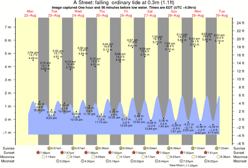 Forecast wind and swell just offshore from A Street around the time the photo was taken