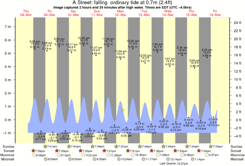 Image captured 2 hours and 24 minutes after high water (falling ordinary tide). Tide height was 0.7m (2.4 ft). Range 7.90m (25.9 ft). Toggle tide graph