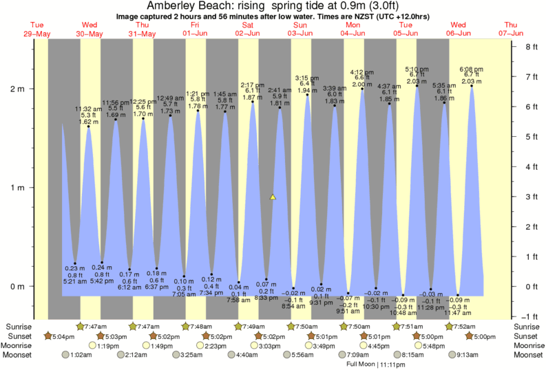 Forecast wind and swell just offshore from Amberley Beach around the time the photo was taken