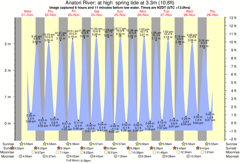 Image captured 6 hours and 11 minutes before low water (at high spring tide). Tide height was 3.3m (10.8 ft). Range 3.88m (12.7 ft). Toggle tide graph