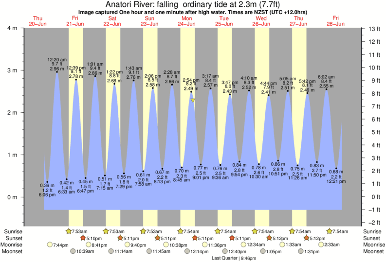Image captured One hour and one minute after high water (falling ordinary tide). Tide height was 2.3m (7.7 ft). Range 3.91m (12.8 ft). Toggle tide graph