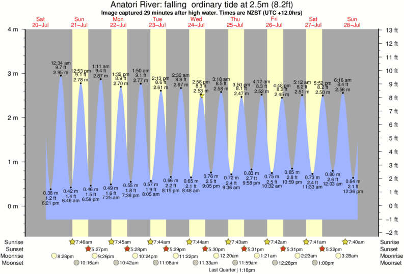 Image captured 29 minutes after high water (falling ordinary tide). Tide height was 2.5m (8.2 ft). Range 3.91m (12.8 ft). Toggle tide graph