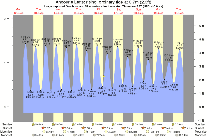 Forecast wind and swell just offshore from Angourie Lefts around the time the photo was taken