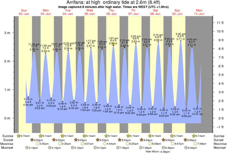 Image captured 8 minutes after high water (at high ordinary tide). Tide height was 2.6m (8.4 ft). Range 3.42m (11.2 ft). Toggle tide graph