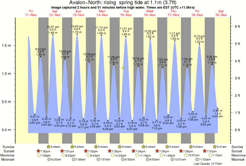 Image captured 2 hours and 51 minutes before high water (rising spring tide). Tide height was 1.1m (3.7 ft). Range 1.87m (6.1 ft). Toggle tide graph