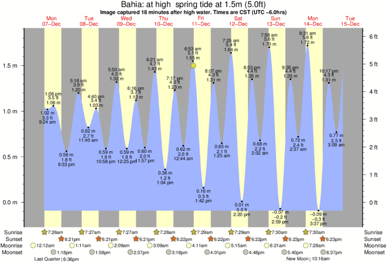 Image captured 18 minutes after high water (at high spring tide). Tide height was 1.5m (5.0 ft). Range 1.82m (6.0 ft). Toggle tide graph