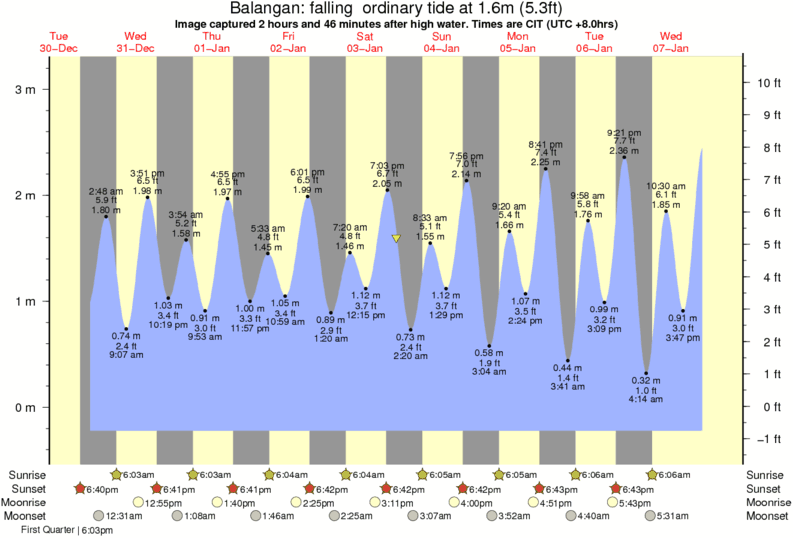 Image captured 2 hours and 46 minutes after high water (falling ordinary tide). Tide height was 1.6m (5.3 ft). Range 3.21m (10.5 ft). Toggle tide graph
