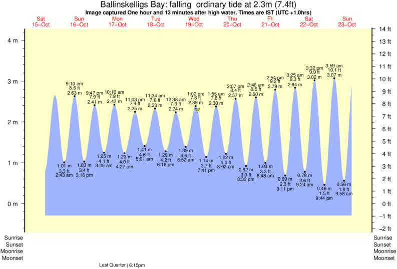 Image captured One hour and 13 minutes after high water (falling ordinary tide). Tide height was 2.3m (7.4 ft). Range 4.16m (13.6 ft). Toggle tide graph