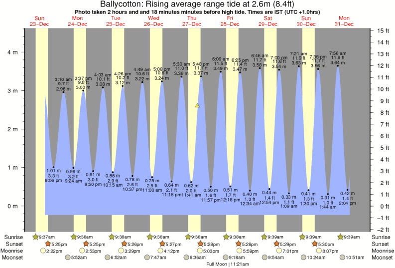 Forecast wind and swell just offshore from Ballycotton around the time the photo was taken