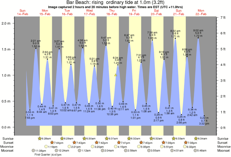 Image captured 2 hours and 20 minutes before high water (rising ordinary tide). Tide height was 1.0m (3.2 ft). Range 1.91m (6.3 ft). Toggle tide graph