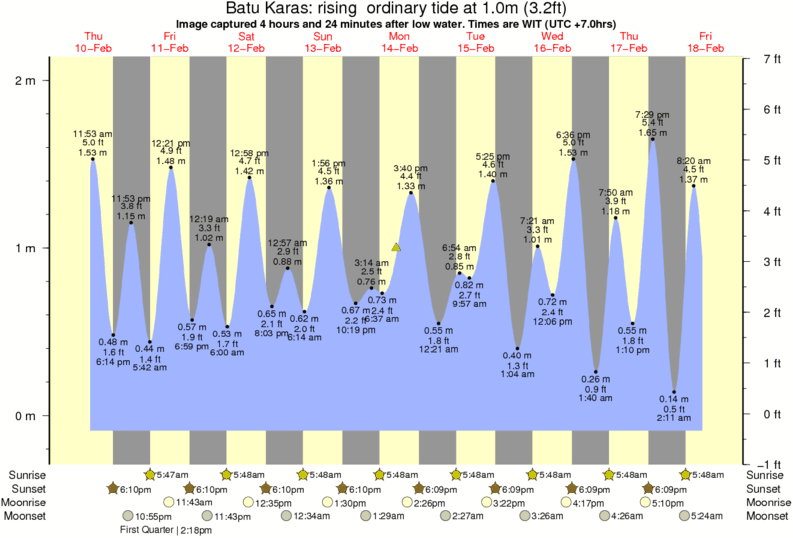 Image captured 4 hours and 24 minutes after low water (rising ordinary tide). Tide height was 1.0m (3.2 ft). Range 2.03m (6.7 ft). Toggle tide graph