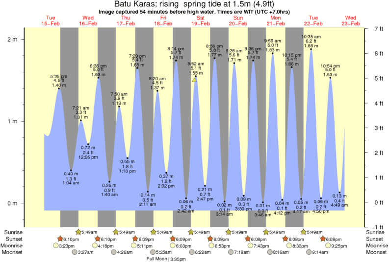 Forecast wind and swell just offshore from Batu Karas around the time the photo was taken