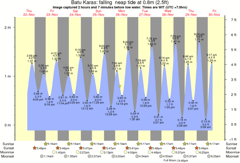 Image captured 2 hours and 7 minutes before low water (falling neap tide). Tide height was 0.8m (2.5 ft). Range 2.11m (6.9 ft). Toggle tide graph