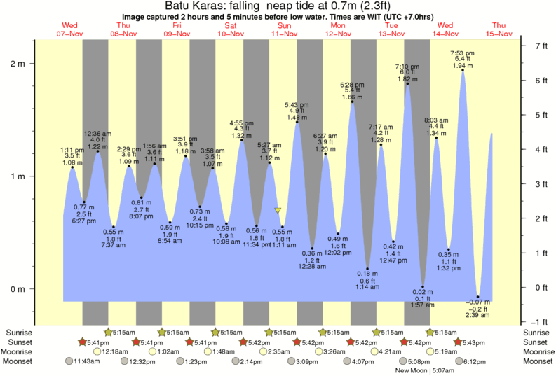 Image captured 2 hours and 5 minutes before low water (falling neap tide). Tide height was 0.7m (2.3 ft). Range 2.11m (6.9 ft). Toggle tide graph