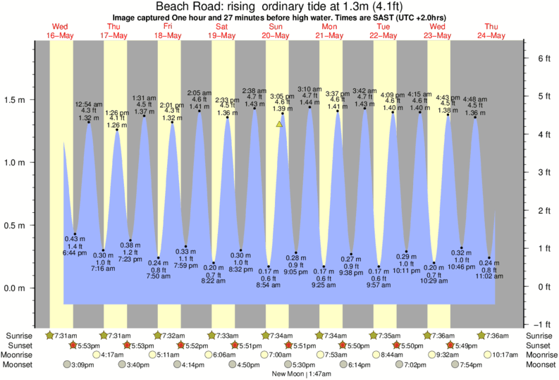 Image captured One hour and 25 minutes before high water (rising ordinary tide). Tide height was 1.3m (4.1 ft). Range 1.91m (6.3 ft). Toggle tide graph