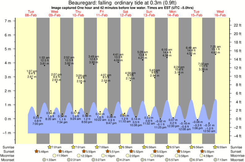Image captured One hour and 42 minutes before low water (falling ordinary tide). Tide height was 0.3m (0.9 ft). Range 7.52m (24.7 ft). Toggle tide graph