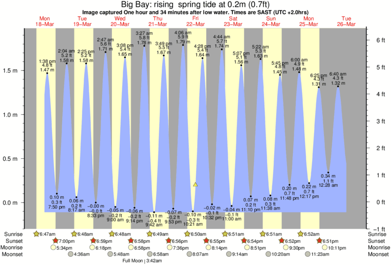 Image captured One hour and 34 minutes after low water (rising spring tide). Tide height was 0.2m (0.7 ft). Range 1.90m (6.2 ft). Toggle tide graph