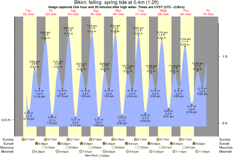 Forecast wind and swell just offshore from Bikini around the time the photo was taken