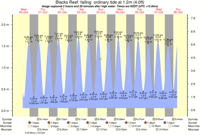 Image captured 2 hours and 29 minutes after high water (falling ordinary tide). Tide height was 1.2m (4.0 ft). Range 1.98m (6.5 ft). Toggle tide graph