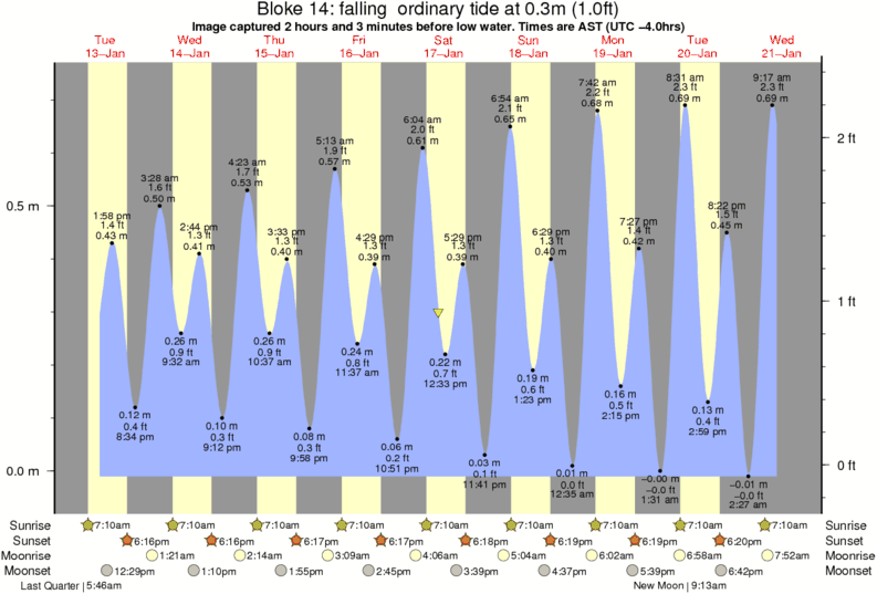 Image captured 2 hours and 3 minutes before low water (falling ordinary tide). Tide height was 0.3m (1.0 ft). Range 0.71m (2.3 ft). Toggle tide graph