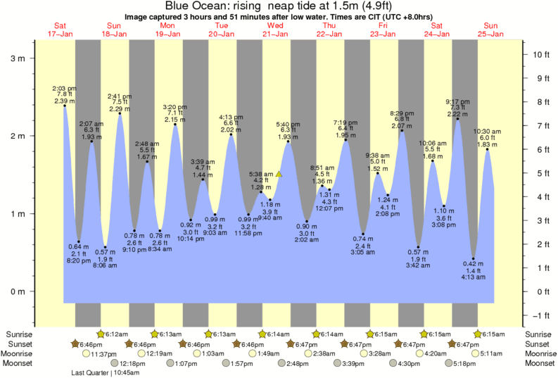 Image captured 3 hours and 51 minutes after low water (rising neap tide). Tide height was 1.5m (4.9 ft). Range 3.08m (10.1 ft). Toggle tide graph