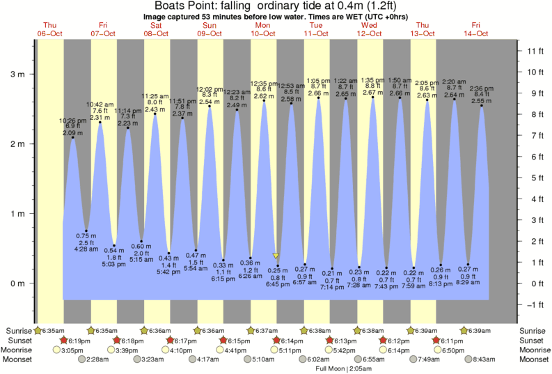 Image captured 53 minutes before low water (falling ordinary tide). Tide height was 0.4m (1.2 ft). Range 3.40m (11.2 ft). Toggle tide graph