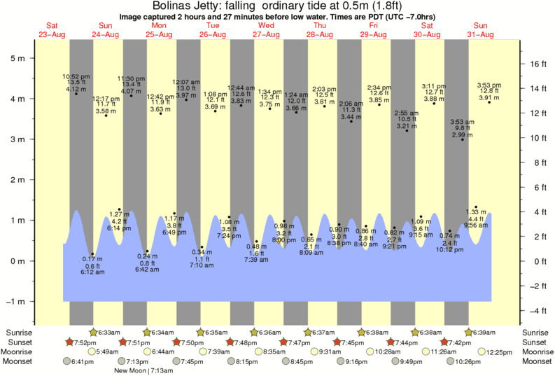 Image captured 2 hours and 27 minutes before low water (falling ordinary tide). Tide height was 0.5m (1.8 ft). Range 5.87m (19.3 ft). Toggle tide graph