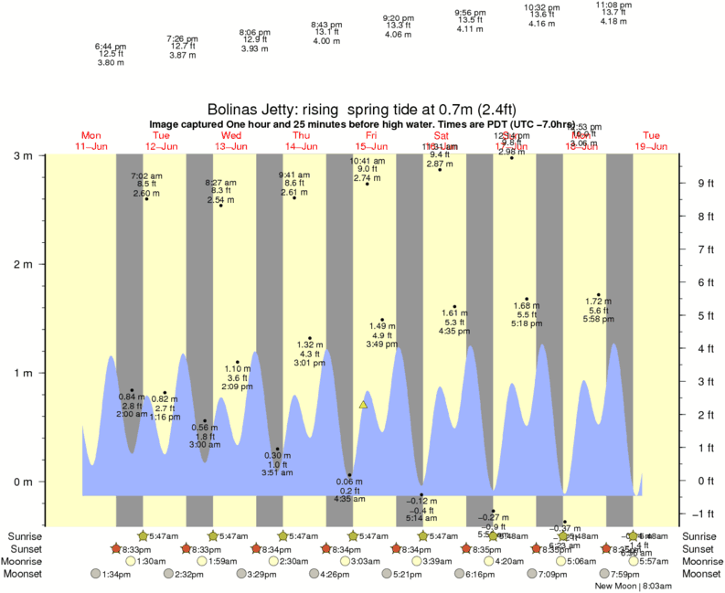 Forecast wind and swell just offshore from Bolinas Jetty around the time the photo was taken