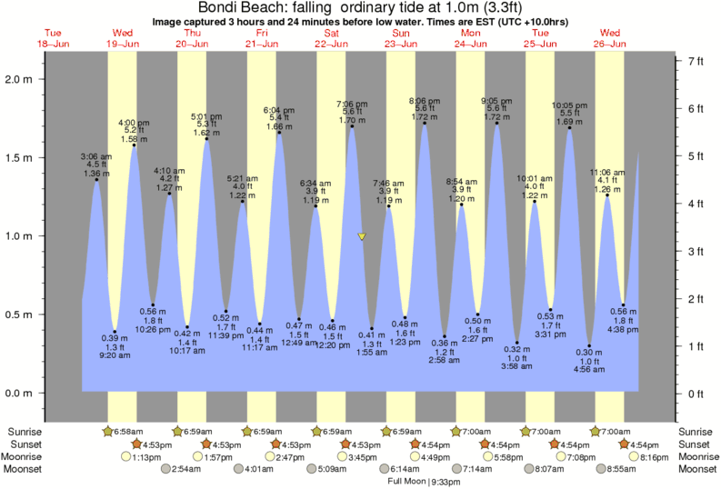 Forecast wind and swell just offshore from Bondi Beach around the time the photo was taken