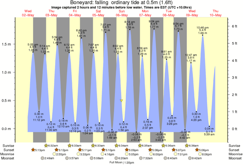 Image captured 2 hours and 12 minutes before low water (falling ordinary tide). Tide height was 0.5m (1.6 ft). Range 1.85m (6.1 ft). Toggle tide graph