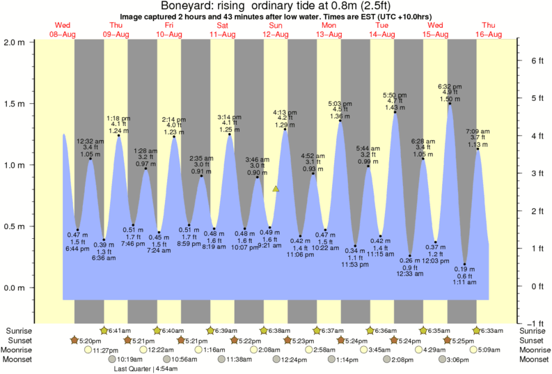 Image captured 2 hours and 43 minutes after low water (rising ordinary tide). Tide height was 0.8m (2.5 ft). Range 1.93m (6.3 ft). Toggle tide graph