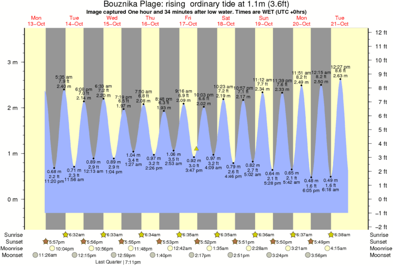 Image captured One hour and 34 minutes after low water (rising ordinary tide). Tide height was 1.1m (3.6 ft). Range 3.68m (12.1 ft). Toggle tide graph
