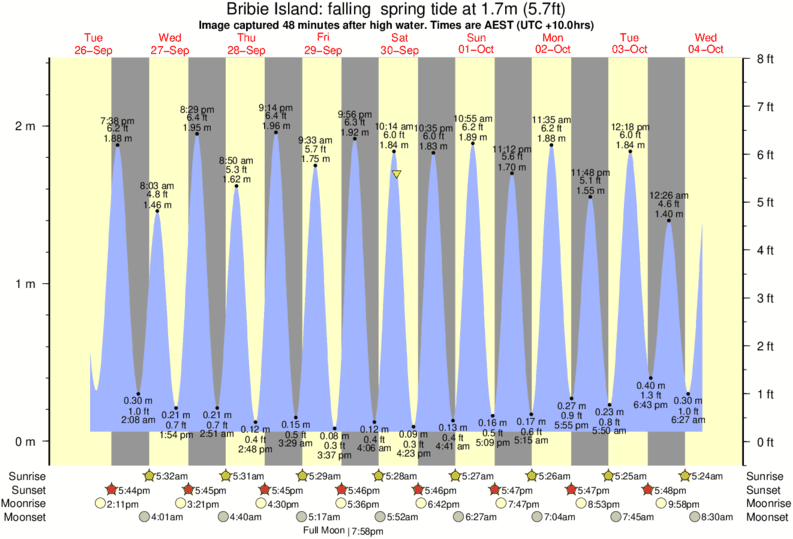 Image captured 48 minutes after high water (falling spring tide). Tide height was 1.7m (5.7 ft). Range 2.16m (7.1 ft). Toggle tide graph