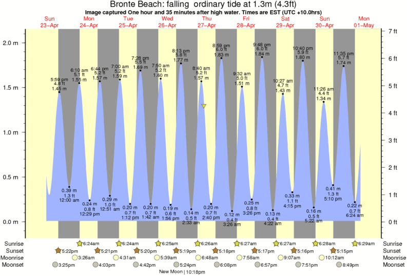 Forecast wind and swell just offshore from Bronte Beach around the time the photo was taken