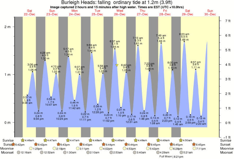 Forecast wind and swell just offshore from Burleigh Heads around the time the photo was taken
