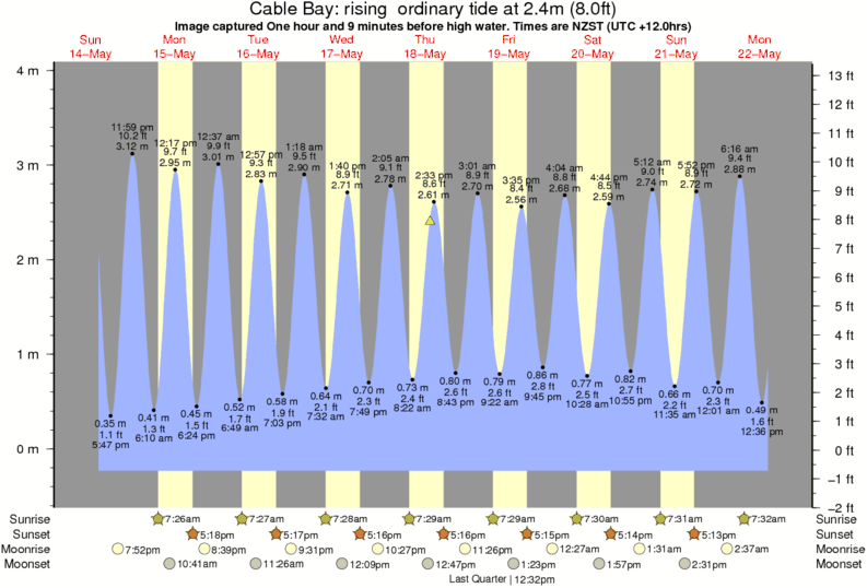 Forecast wind and swell just offshore from Cable Bay around the time the photo was taken