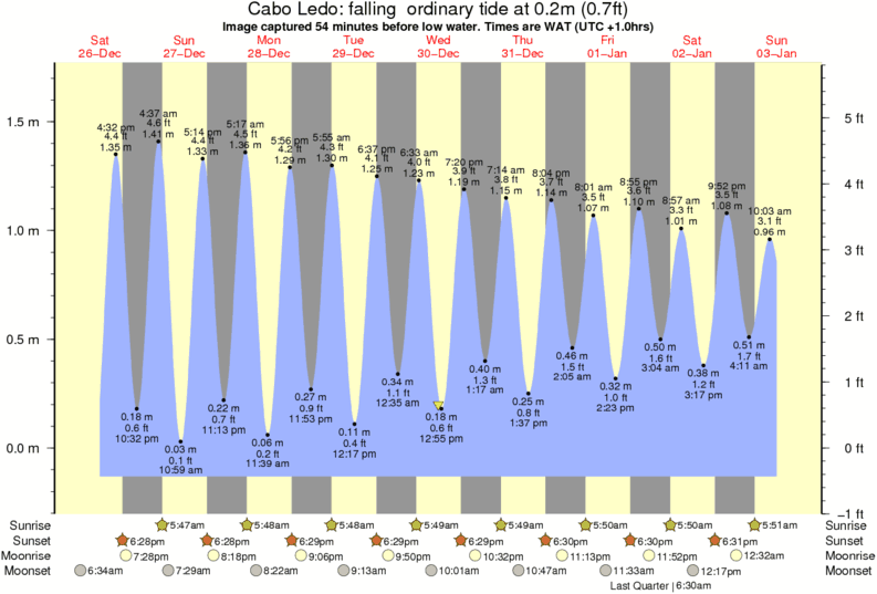 Forecast wind and swell just offshore from Cabo Ledo around the time the photo was taken