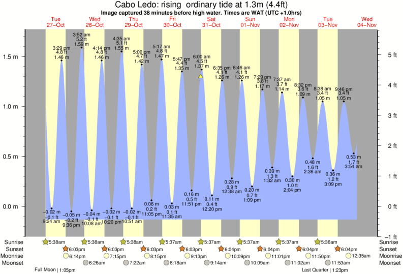 Forecast wind and swell just offshore from Cabo Ledo around the time the photo was taken