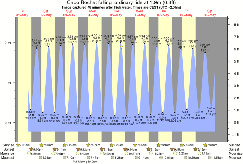 Image captured 48 minutes after high water (falling ordinary tide). Tide height was 1.9m (6.3 ft). Range 2.60m (8.5 ft). Toggle tide graph
