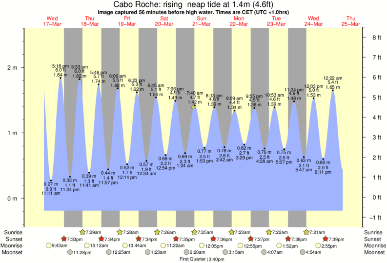 Forecast wind and swell just offshore from Cabo Roche around the time the photo was taken