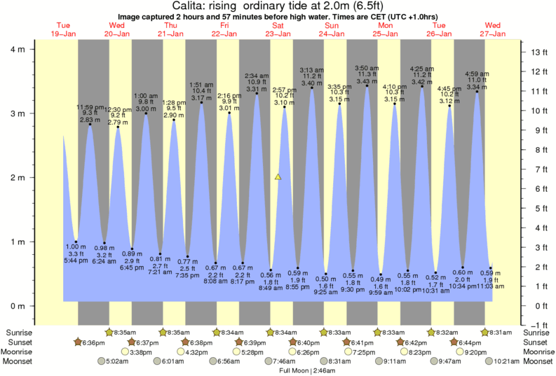 Image captured 2 hours and 57 minutes before high water (rising ordinary tide). Tide height was 2.0m (6.5 ft). Range 3.71m (12.2 ft). Toggle tide graph
