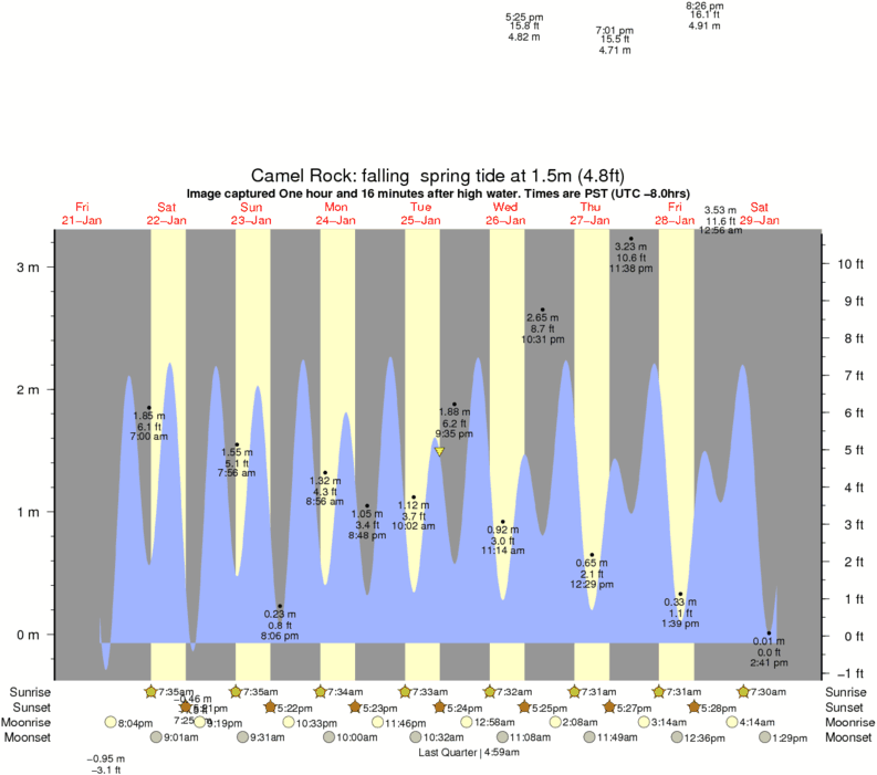 Image captured One hour and 16 minutes after high water (falling spring tide). Tide height was 1.5m (4.8 ft). Range 3.07m (10.1 ft). Toggle tide graph