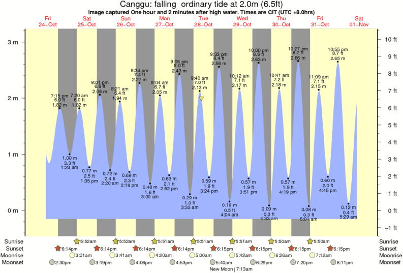 Forecast wind and swell just offshore from Canggu around the time the photo was taken