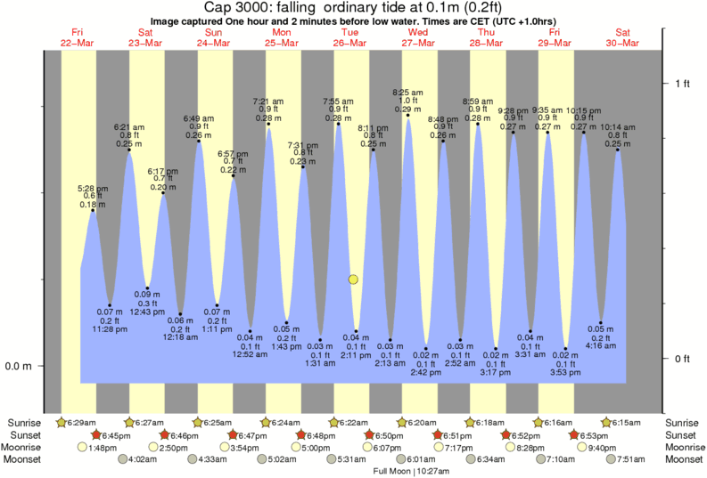 Image captured One hour and 2 minutes before low water (falling ordinary tide). Tide height was 0.1m (0.2 ft). Range 0.35m (1.1 ft). Toggle tide graph