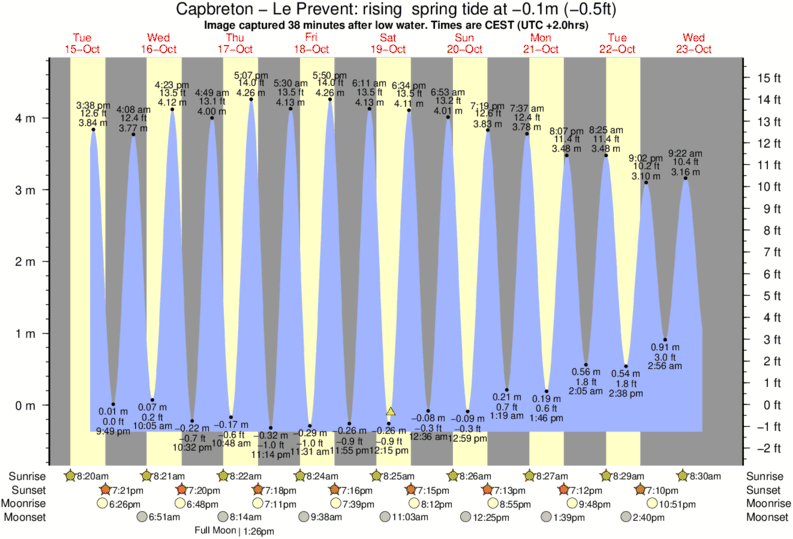 Image captured 38 minutes after low water (rising spring tide). Tide height was -0.1m (-0.5 ft). Range 4.74m (15.6 ft). Toggle tide graph