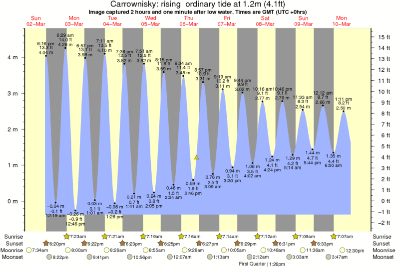 Image captured 2 hours and one minute after low water (rising ordinary tide). Tide height was 1.2m (4.1 ft). Range 4.71m (15.5 ft). Toggle tide graph