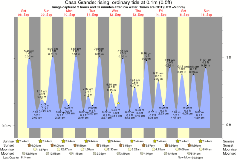 Image captured 2 hours and 39 minutes after low water (rising ordinary tide). Tide height was 0.1m (0.5 ft). Range 0.45m (1.5 ft). Toggle tide graph