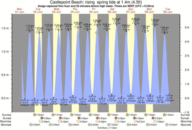Forecast wind and swell just offshore from Castlepoint Beach around the time the photo was taken
