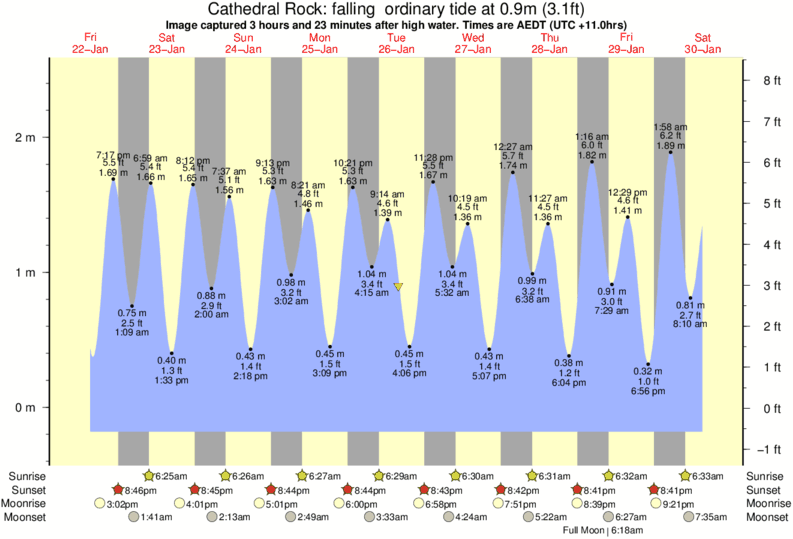 Image captured 3 hours and 23 minutes after high water (falling ordinary tide). Tide height was 0.9m (3.1 ft). Range 2.52m (8.3 ft). Toggle tide graph