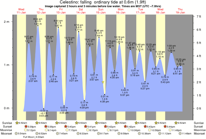 Image captured 2 hours and 3 minutes before low water (falling ordinary tide). Tide height was 0.6m (1.9 ft). Range 2.04m (6.7 ft). Toggle tide graph